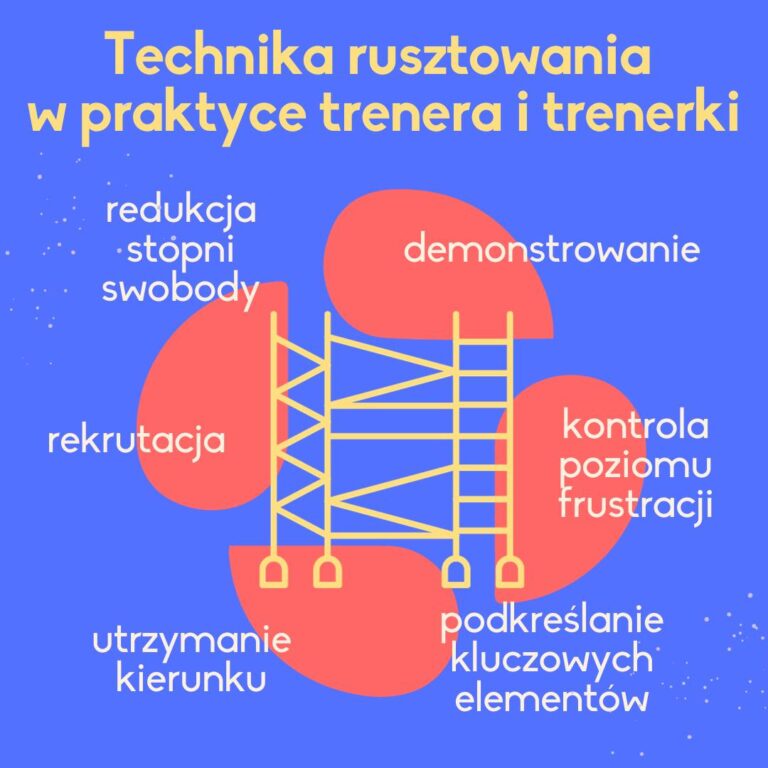 Najbardziej kojarzoną z koncepcją strefy najbliższego rozwoju Wygotskiego techniką edukacyjną jest rusztowanie (scaffolding). Tworząc rusztowanie, edukator(-ka) dostosowuje proces uczenia się do indywidualnych potrzeb i poziomu rozwoju osoby uczącej się. Rusztowanie zapewnia strukturę i wsparcie niezbędne do stopniowego przyswajania nowej wiedzy i umiejętności. Wood, Bruner i Ross (1976) opisują sześć funkcji edukatora w procesie budowy rusztowania. Chcielibyśmy podzielić się z Wami krótkim opisem tych zadań. W naszym poczuciu z powodzeniem technikę tę można stosować podczas szkoleń.