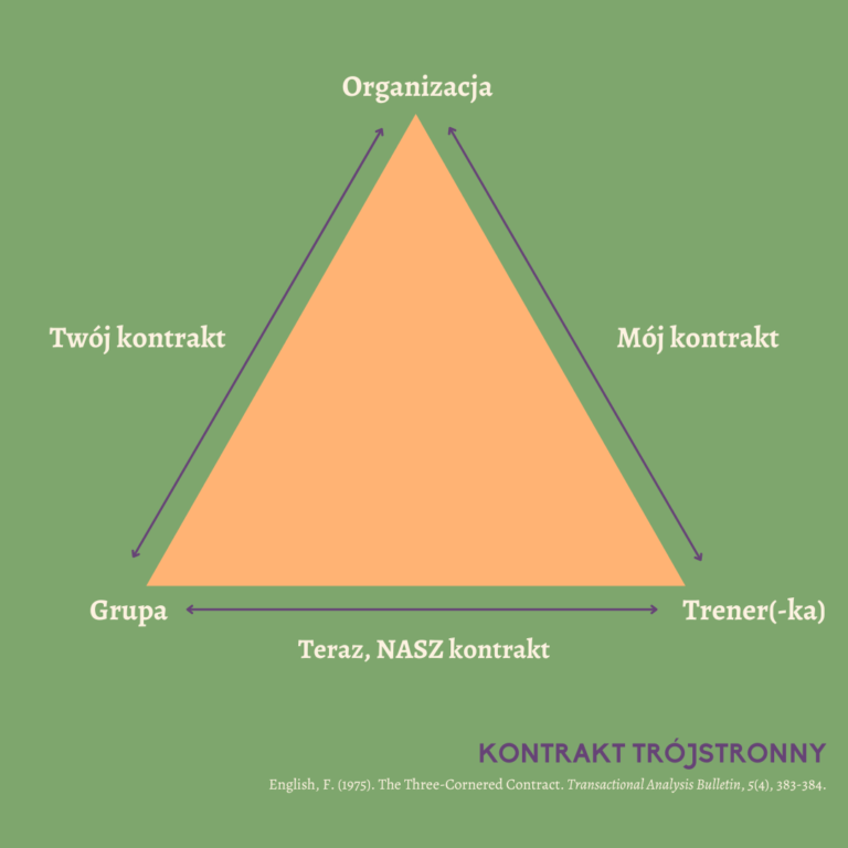 W odniesieniu do działań edukacyjnych czy rozwojowych, które prowadzimy w kontraktach trójstronnych – my jako trenerzy – grupa osób uczestniczących – organizacja jako zleceniodawca i sponsor tych działań (patrz rysunek), szczególnie ważne jest, byśmy rozpoznali, w jakim stopniu to miejsce pracy jest bezpieczne do uczenia się i wdrażania zmian, i – w miarę możliwości – zadbali o te warunki w ramach planowania działań wspierających szkolenie, warsztat, proces rozwoju kompetencji, itp. Czy osoby uczestniczące w szkoleniu dajmy na to z asertywnej komunikacji, będą miały warunki do tego, by rozwijać i wykorzystywać w swojej pracy na co dzień? Czy w organizacji, dla której pracujemy, ludzie podejmują ryzyko interpersonalne? A może bywają zawstydzani i nierówno traktowani? Przygotowując procesy szkoleniowe, zadawajmy sobie tego typu pytania. Nie tylko o to, jak my na sali zadbamy o bezpieczeństwo psychiczne, o przyjazną przestrzeń uczenia się, ale także jakie doświadczenia w tym wymiarze osoby uczestniczące w szkoleniu mają na co dzień. Zadbajmy o to, by kontrakt na szkolenie był jawny dla wszystkich stron, kalibrujmy oczekiwania, konfrontujmy nierealistyczne założenia. W kontakcie z organizacją podkreślajmy, że wszystkie trzy strony są odpowiedzialne za powodzenie działań i zastanawiajmy się ze sponsorami projektu, jakie działania po ich stronie mogłyby przyczynić się do zwiększania poczucia bezpieczeństwa psychicznego pracowników firmy – by mogli popełniać błędy, uczyć się i korzystać ze wsparcia.